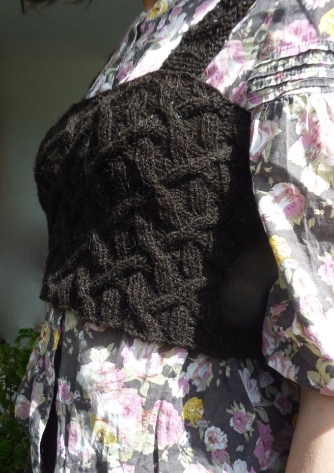Work the gauge you like with the yarn you’ve chosen to create either tight tension and a more fitted corset-style Ancestors Bodice or go loose on bigger needles and let the cable stitch relax. All ways look glorious so you just can’t go wrong. And the way the roots cable pattern naturally relaxes and contracts makes it is extremely comfortable to wear.