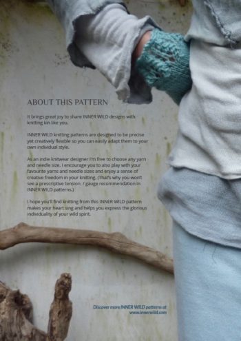 INNER WILD Curlicue Warmers – curls of warm wool like the spirals of leaves about to unfurl, like shells on the beach, ferns uncurling; nature’s curlicue pattern repeats here too in a simple cable stitch to grace your wrists and fingers.
