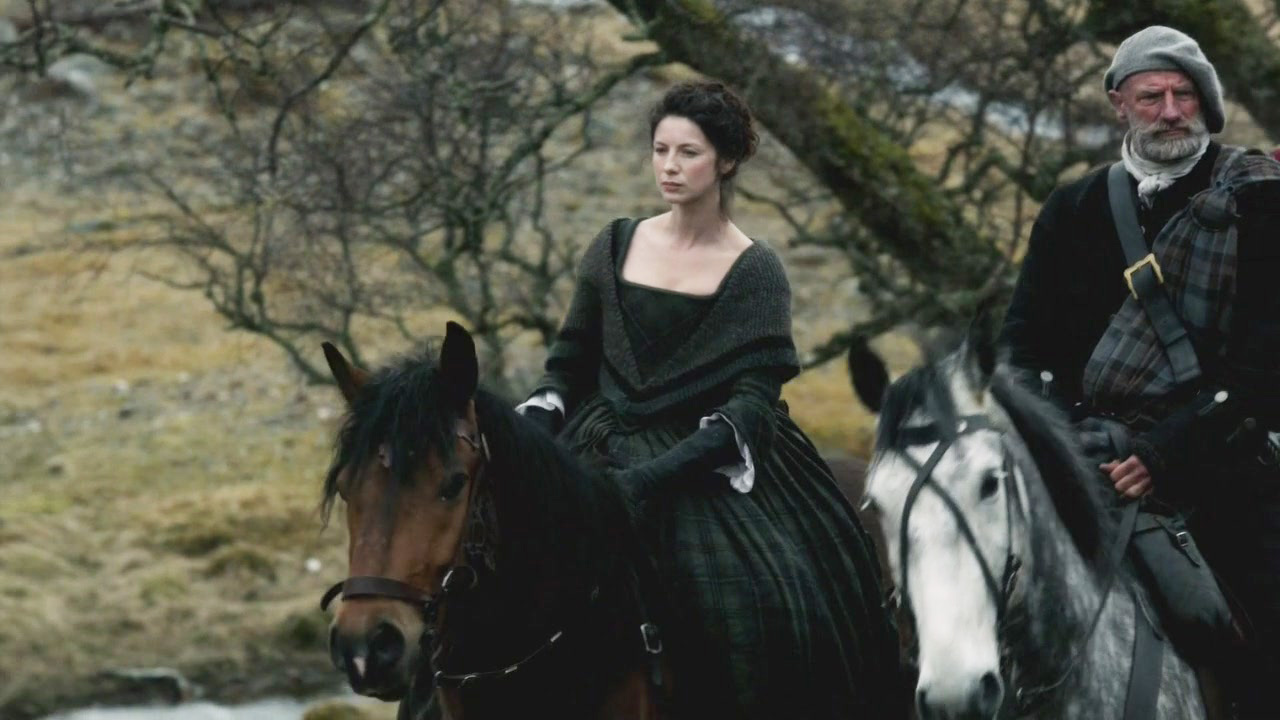 And Jamie has Harris wool held triple gauntlets and boot toppers. You’ll see them worn as wrist warmers, gauntlets, boot toppers and kilt leg warmers in various DK, aran and chunky-weight wools in Outlander.